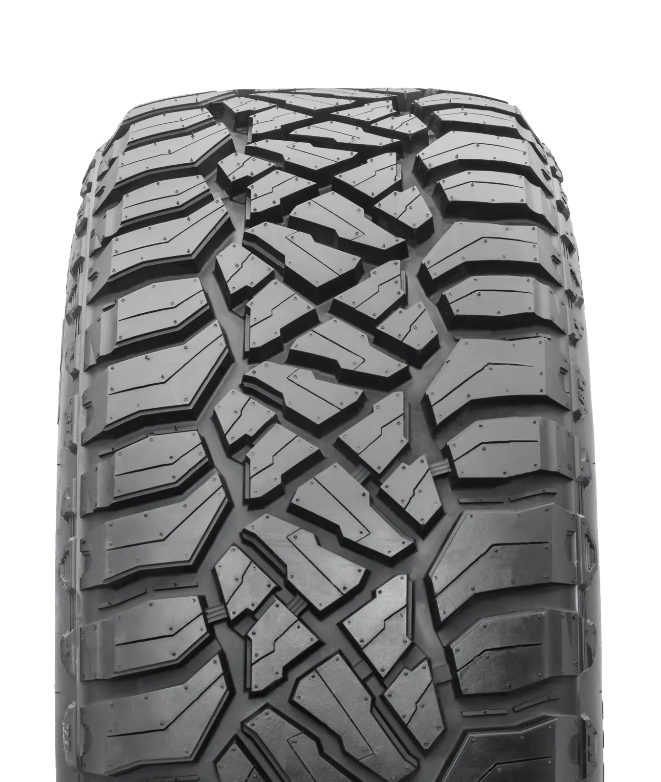 Los gajos de hombro ondulados festoneados con eyectores de piedras maximizan la tracción mientras que remueven continuamente los desechos en los huecos. Los ángulos del bloque de banda de rodamiento de precisión aseguran la estabilidad del vehículo, mientras que proporcionan comodidad de viaje con ruido de camino reducido para un neumático RT hasta el mínimo.