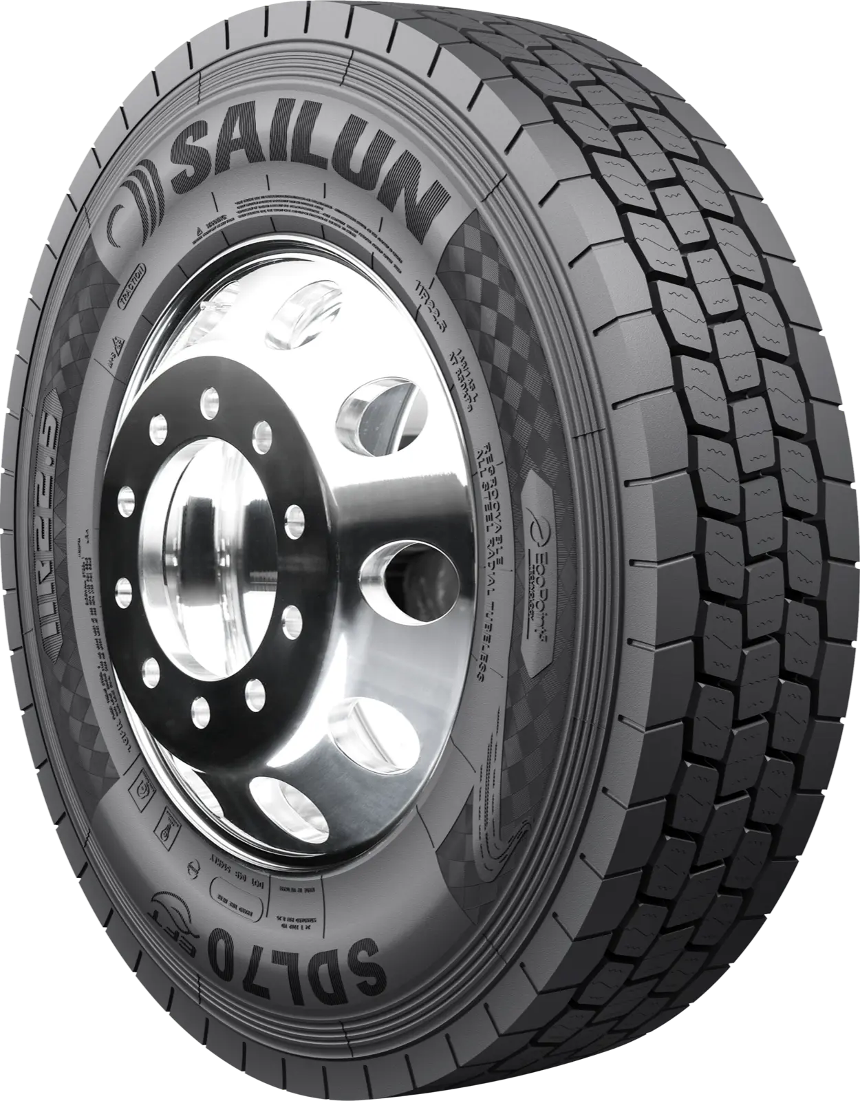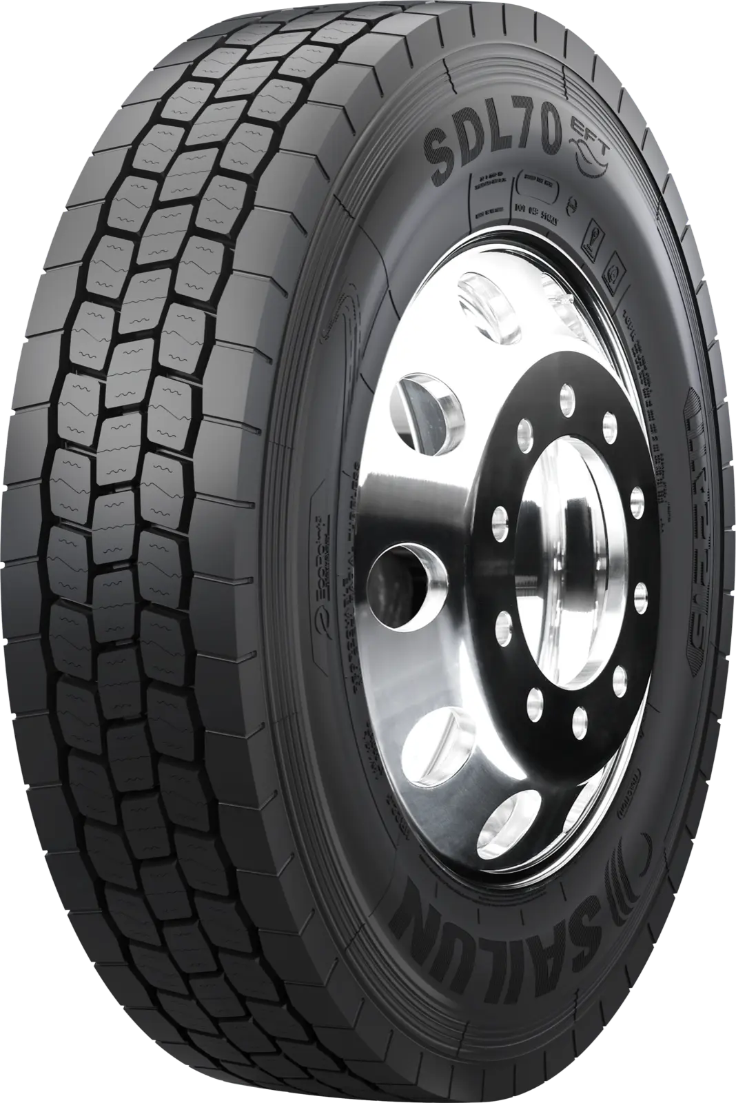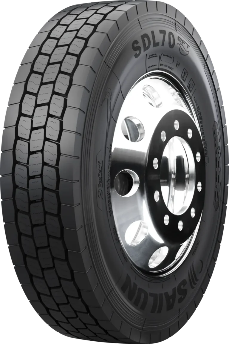 The SDL70 EFT is a premium closed shoulder drive tire designed with a 240 mm wide footprint and 30/32” tread depth to deliver maximum mileage, stability and ride comfort. The SDL70 EFT has Slim Bead technology incorporated to reduce rolling resistance and improve fuel economy. The EcoPoint3 tread compound is produced by using a proprietary liquid phase mixing technology for the best compound dispersion. The benefit of EcoPoint3 is maximized mileage, wet traction and rolling resistance without compromise to any of the other attributes. SDL70 EFT is best suited for on highway long haul and regional applications.