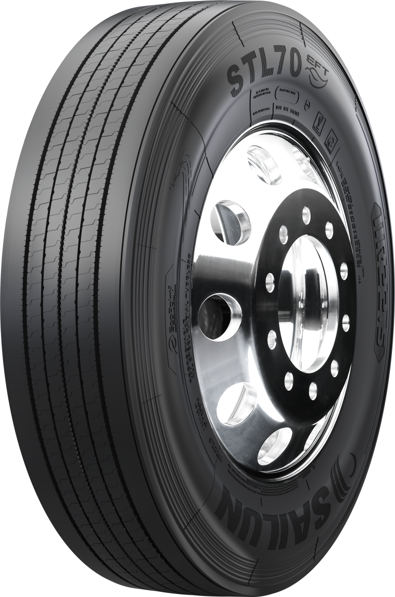 The STL70 EFT is designed specifically for on highway trailer applications. The EcoPoint3 tread compound provides industry leading low rolling resistance without compromising tread mileage. The newly designed decoupling groove aids in minimizing irregular tread wear. Micro sipes along tread ribs help the tire run cool and minimize river wear. The Slim Bead casing design lowers casing weight to improve fuel efficiency without compromising durability. The STL70 EFT is an ideal tire for long-haul highway trailer axle applications where low rolling resistance and even wear are essential.
